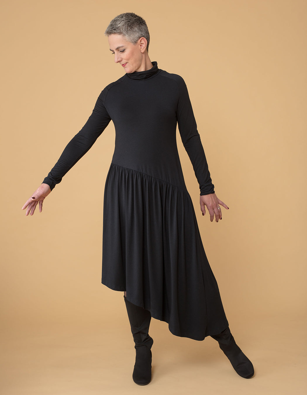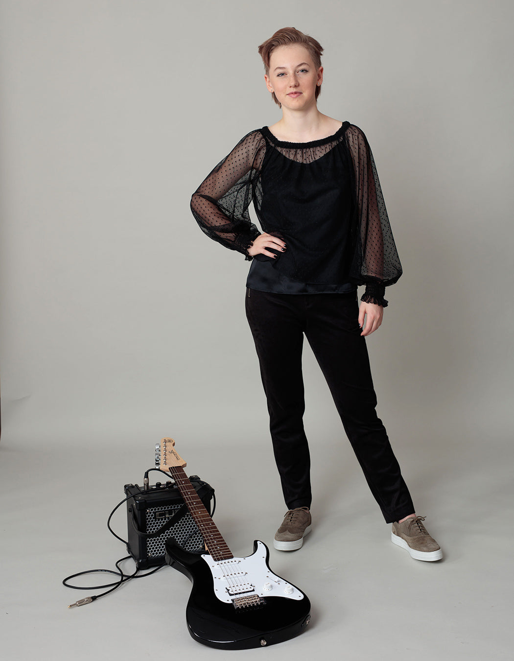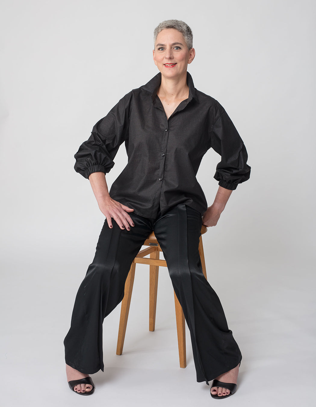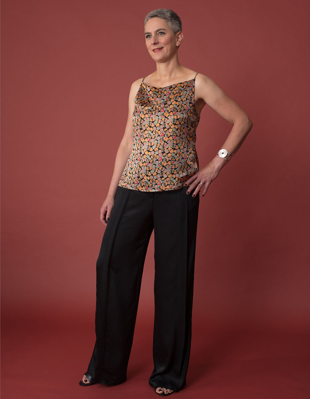 A tulle blouse, faux-suede pants, two silk tops, a flowing soy jersey dress, a shirt dress from viscose crepe, a papertouch shirt and wide-leg viscose pants to add a distinctive touch to your wardrobe. Women’s sizes 34–52